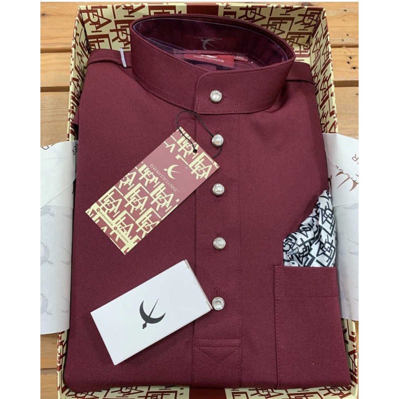 Baju Melayu Raya 2022 Maroon Red Elrah Exclusive Slim Fit Shopee Malaysia
